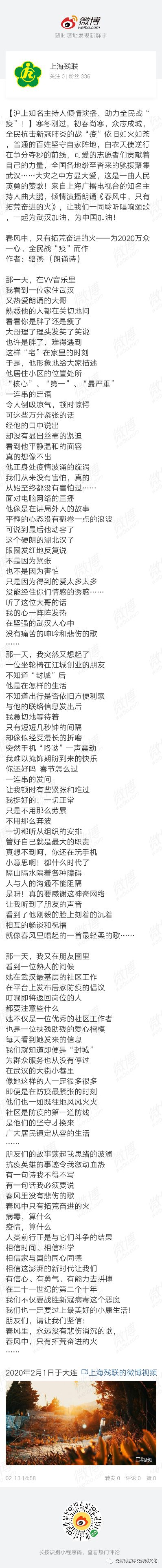 【战疫诗笺】上海广播电视台曲大鹏老师为武汉平民英雄而歌,倾情朗诵骆燕作品《春风里……》