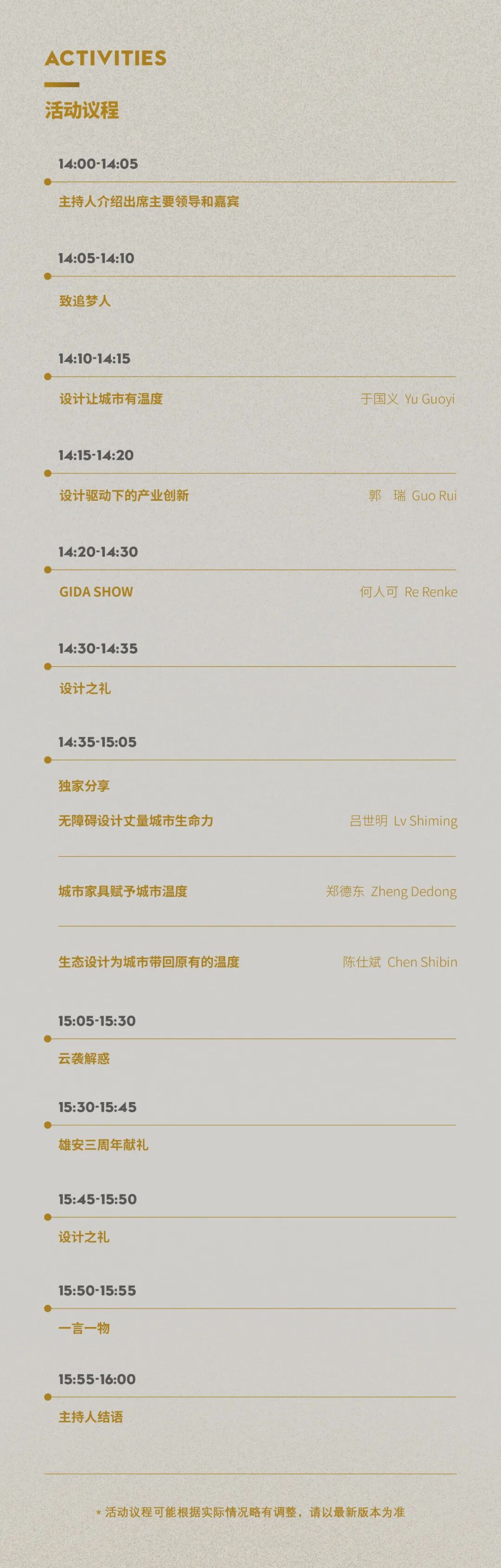吕世明 “无障碍设计丈量城市生命力” 无障碍设计并非我们理解的仅适用于残疾人、老年人、婴幼儿,实际上无障碍设计涉及到社会的方方面面,与每个人都有直接关系。 吕世明将结合中国实际国情,畅谈无障碍设计的现在与未来,分享无障碍设计在未来城市发展中的重要作用。 河北雄安新区改革发展局局长 “设计让城市有温度” 河北省工业和信息化厅科技处副处长 “设计驱动下的产业创新” 封昌红 何人可 不一样的金芦苇工业设计奖 金芦苇工业设计奖除了诱人的百万奖金,还蕴藏着怎样的文化底蕴?何人可将从奖项宗旨、奖项类别、评审制度等多个角度,对金芦苇工业设计奖进行全方位解析,以设计脱口秀的形式,呈现不一样的金芦苇工业设计奖。 嘉宾简介 何人可,全国教学名师,中国工业设计协会特邀副会长,教育部高等学校工业设计专业教学指导分委员会主任委员,“中国设计日”的三大倡议者之一,设计引擎(Design Engine)创新联盟发起人,“2014光华龙腾奖中国设计贡献奖金质奖章”获得者。 郑德东 城市是一个大家庭,而街道就是城市的客厅,城市家具就是放在城市客厅里的家具。 郑德东凭借多年的城市规划与景观设计经验,在城市家具设计领域拥有独特的见解,将在此次沙龙中,针对充满温度与人本性的城市家具对城市的赋能作用进行分享。 嘉宾简介 郑德东,字云介。东南大学艺术学博士,柏林艺术大学(UDK)建筑学博士,后师从东南大学建筑学院齐康院士基于城市规划与景观设计方向进行合作博士后研究。 2018年《雄安新区城市家具导则》编委会成员;2019年江苏省照明电器协会文创灯光专委会主任;2019年农业部社会促进司《乡村振兴战略下传统村落空间艺术价值重构研究》课题主持人;2020年主持完成农业部《“夜游经济”背景下打造良性叙事的乡村旅游夜间景观的对策研究》课题结题。 陈仕斌 月步科技联合创始人 i-LINK公益活动发起人 “生态设计为城市带回原有的温度” 陈仕斌曾经用设计重新定义行走,以一双鞋火遍大江南北,在此次沙龙中,他将以丰富的设计经验,聚焦人与自然关系,分享可持续与环保设计的商业化,为设计与商业的完美平衡提供有效建议。 嘉宾简介 陈仕斌设计作品曾取得德国红点设计奖、iF奖、日本G-Mark设计奖、美国IDEA奖等国际奖项。