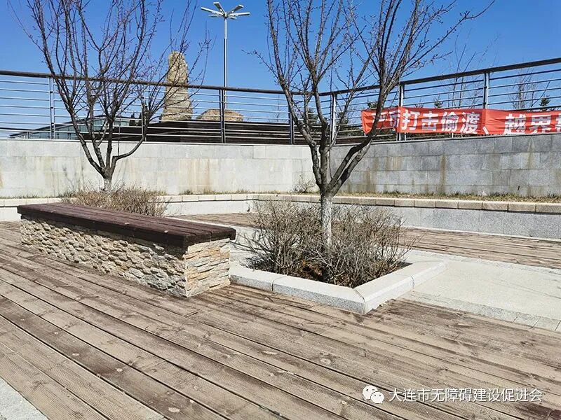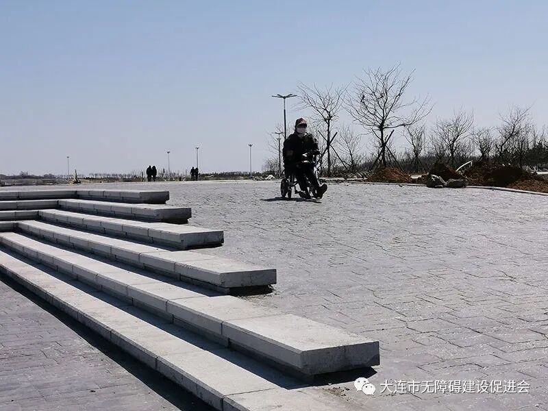 园路是公园的重要组成部分、是连接景观的基本要素。它像脉络一样把各个景观和景区连接起来,起到组织空间、引导游览、联络交通等作用。之所以选择园路作为分析对象,主要因为园路无障碍设计是目前公园设计的短板。比如:大连国际雕塑公园只有主出入口有无障碍坡道——从这里入园,只能从这里出园。园区内环绕的多层台阶不仅阻碍特殊群体接近雕塑,也将整个园区分为两部分。东港海滨木栈道也存在类似问题:无障碍坡道集中在主出入口,其他出入口都没有无障碍设施;木栈道沿途也有无障碍坡道,但设置较为随意,没有体现出最佳路线。星海公园在2018年改造之后,园路多采用马蹄石、龟裂石,凹凸不平,甚至带有尖锐棱角,没有兼顾艺术与安全便利。