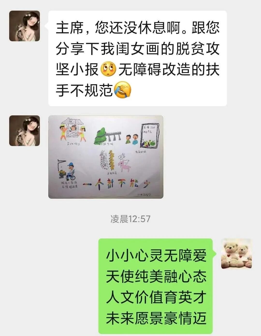 就在看到这段视频的当天,我也感受到了一丝温暖。好友“藤子”是在残联工作做无障碍推进工作的一位美女,她的刚刚8岁女儿才上二年级在画画作业时,不仅画了残疾人家庭的无障碍,还写上了“一个都不能少”,看了让我非常感动。或许因妈妈是做残疾人工作的,或许常听妈妈说到无障碍的事,耳濡目染,在她的幼小心灵中播下了这颗善良美好的种子。中国残联吕世明副主席看到充满童心童趣的图画,即兴赋小诗一首:“小小心灵无障爱,天使纯美融心态;人文价值育英才,未来愿景豪情迈”。