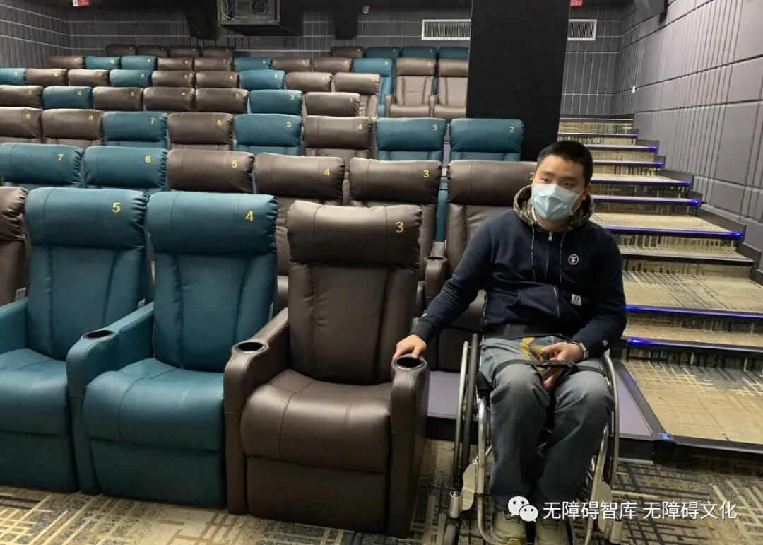 长安商场五层还设有无障碍电影院,每个影厅的第一排都设有两个可拆卸移动的无障碍轮椅席位,当有轮椅使用者来观影的时候把座椅移开即可,方便轮椅人士进入体验,在没有轮椅使用者的时候,它就是一个普通席位,也不会影响健全人士的观影体验,同时极大满足了轮椅使用者的观影需求。作为一名轮椅体验者的我,看到这样的设计当然非常高兴,同时也跟影院方面的工作人员交换了一些我的想法,毕竟作为轮椅使用者,每次观影的时候都需要专人协助移动椅子,对于身障者自己来说,总会感觉给别人添麻烦,不好意思的感觉。如果把观影厅无障碍席位的椅子换成向后折叠式的固定座椅,同时地面设置无障碍轮椅标识,有轮椅使用者观影时直接可以进入,不需要专人服务,平时也不会妨碍健全人的使用。另外在购票选位时就能有相应的无障碍坐席提示,更加提升使用者的观影感受。