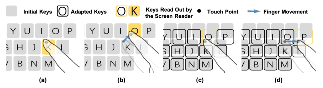 目前,视障人士可以通过读屏软件使用手机。但在文本输入时,经常因为点击不准影响输入效率,增大了交互难度。针对该问题,清华大学计算机系教授史元春和副研究员喻纯带领团队创新性提出字符级文本输入纠错方法,基于盲人用户输入行为模型和语言模型动态预测目标字符,在手指碰触瞬间自动调整键盘布局,实现字符级自动纠错。使用该方法,用户在零学习成本的情况下,可节省63%的纠错操作。字符级纠错算法运算效率高,响应速度在毫秒级,支持任意语言的文本输入。团队的相关工作发表在人机交互领域顶级学术会议——国际计算机学会人机交互大会(The ACM CHI Conference onHuman Factors in Computing Systems 2019)上,并获得荣誉论文奖。