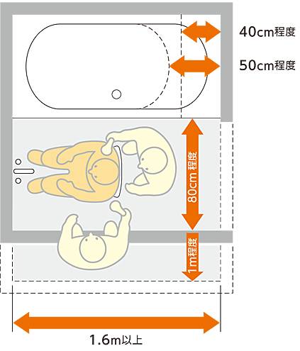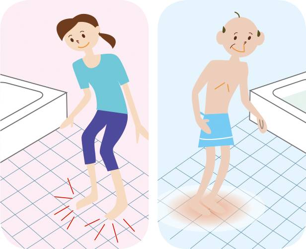 传统的浴缸有常见的深度大约60-65厘米。如果在固定的地面上,进入浴缸有很高的横跨高度。随着年龄的增加,很容易打破身体的平衡,常委坐也易趋于疲软。当进出抬起脚达到到腰高,则老人会增加跌倒的风险。从地面到浴缸边缘的高度为350~450mm是最容易出入的,浴缸的深度约500毫米左右。急剧的温度变化对心脏会受到刺激,这是国内少有预计的。寒冷的冬季,由于室内外温度急剧变化,容易引发「热休克」现象,血管显著伸缩,血压和脉搏大幅变动,容易有脑梗塞和脑溢血等危险状况。特别是,浴室、卫生间、脱衣室等地。