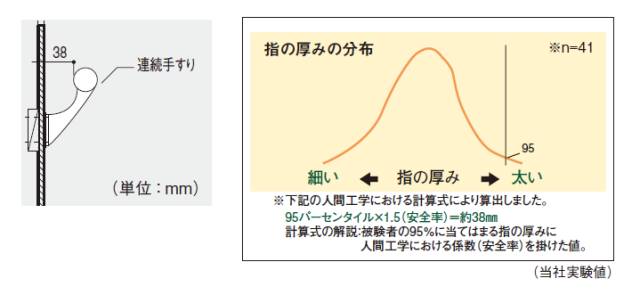 根据实验者95%手指的厚度分布数据:扶手和墙壁的间距=手指直径*1.5(安全率)≈38mm。