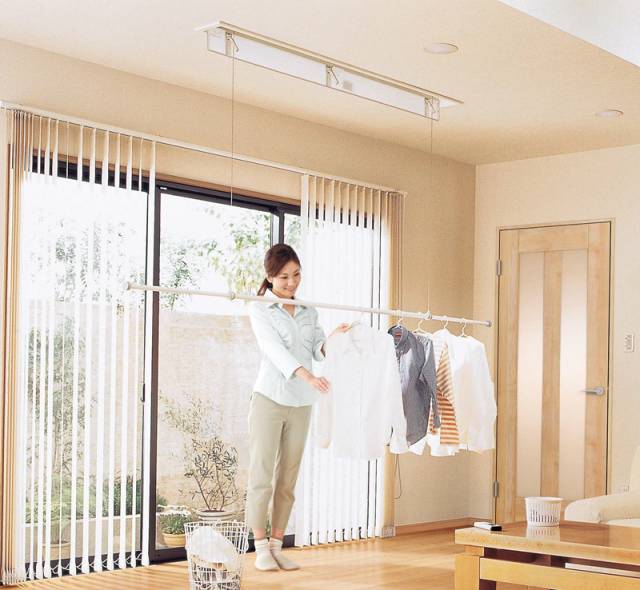 向上挂晒衣服是较为吃力的状态,另外落地挂衣架易占地,选择一款可以降下来的晾衣杆等等。