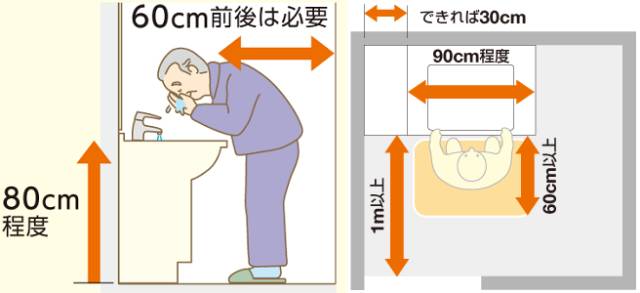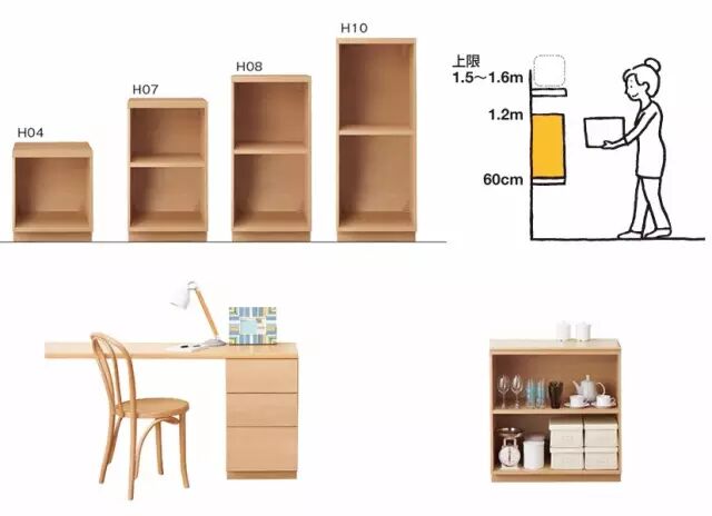 老人站立时,80cm是化妆柜的舒适高度,可以减少腰部的负担,以及水不容易流向肘部而滴落,深度空间上需要达到60cm,这样的空间站或者坐都恰好了。