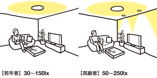 正常整个房间的照明,老龄人需亮度50-250lx。