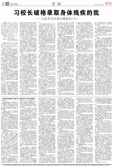 【推荐阅读】中国青年报连载刊文:《习校长破格录取身体残疾的我》