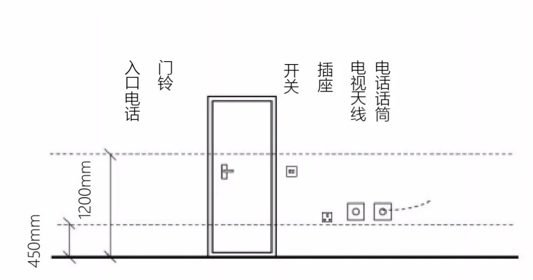 ▲可拜访住宅中开关及插座高度示意图