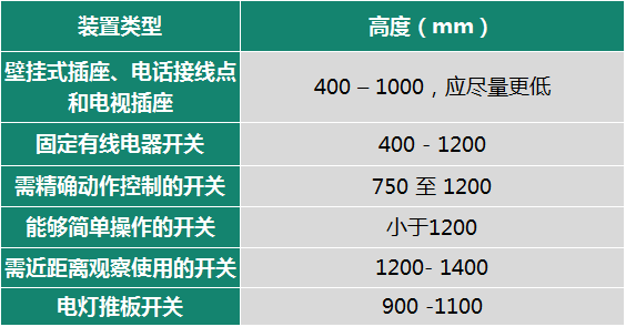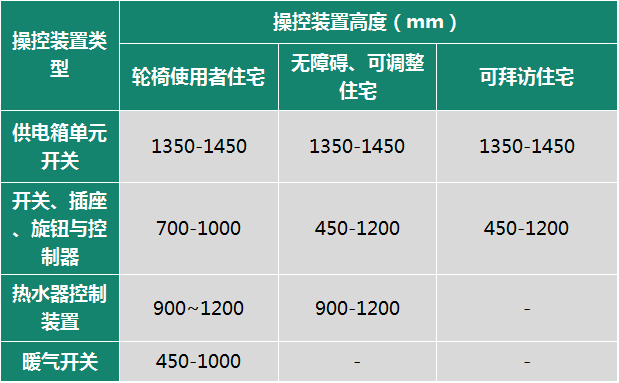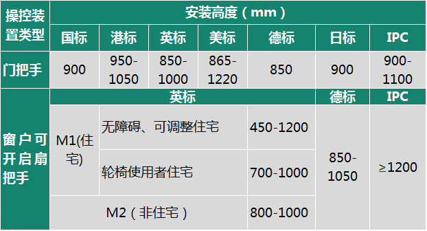 英标M1(住宅)则从住宅的不同使用人群出发,对操控装置的相应高度范围进行了规定: