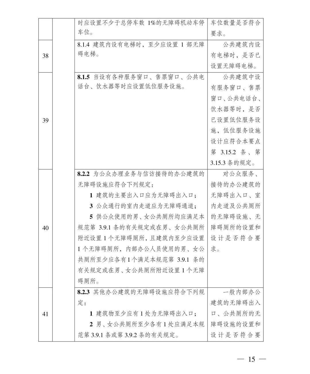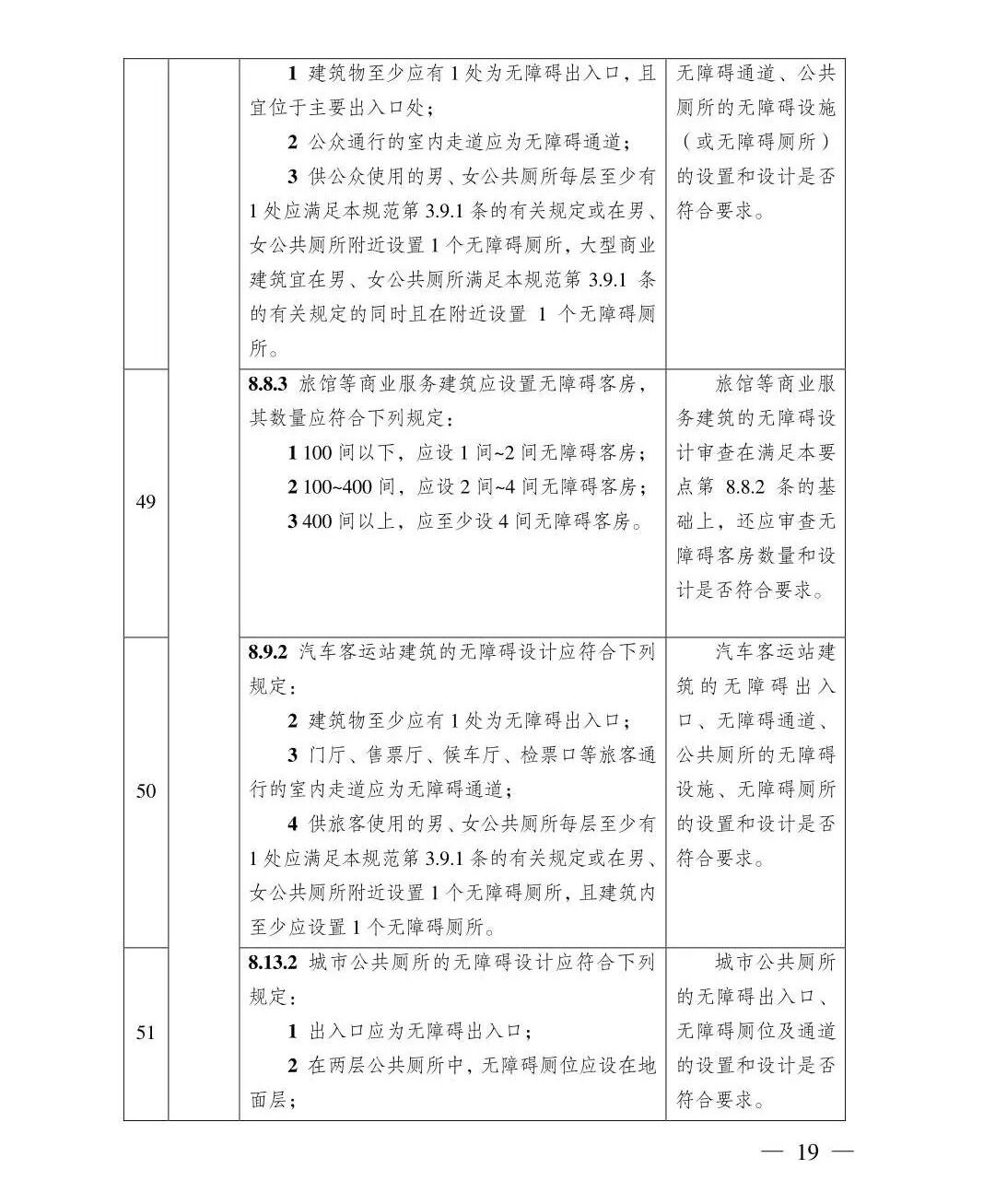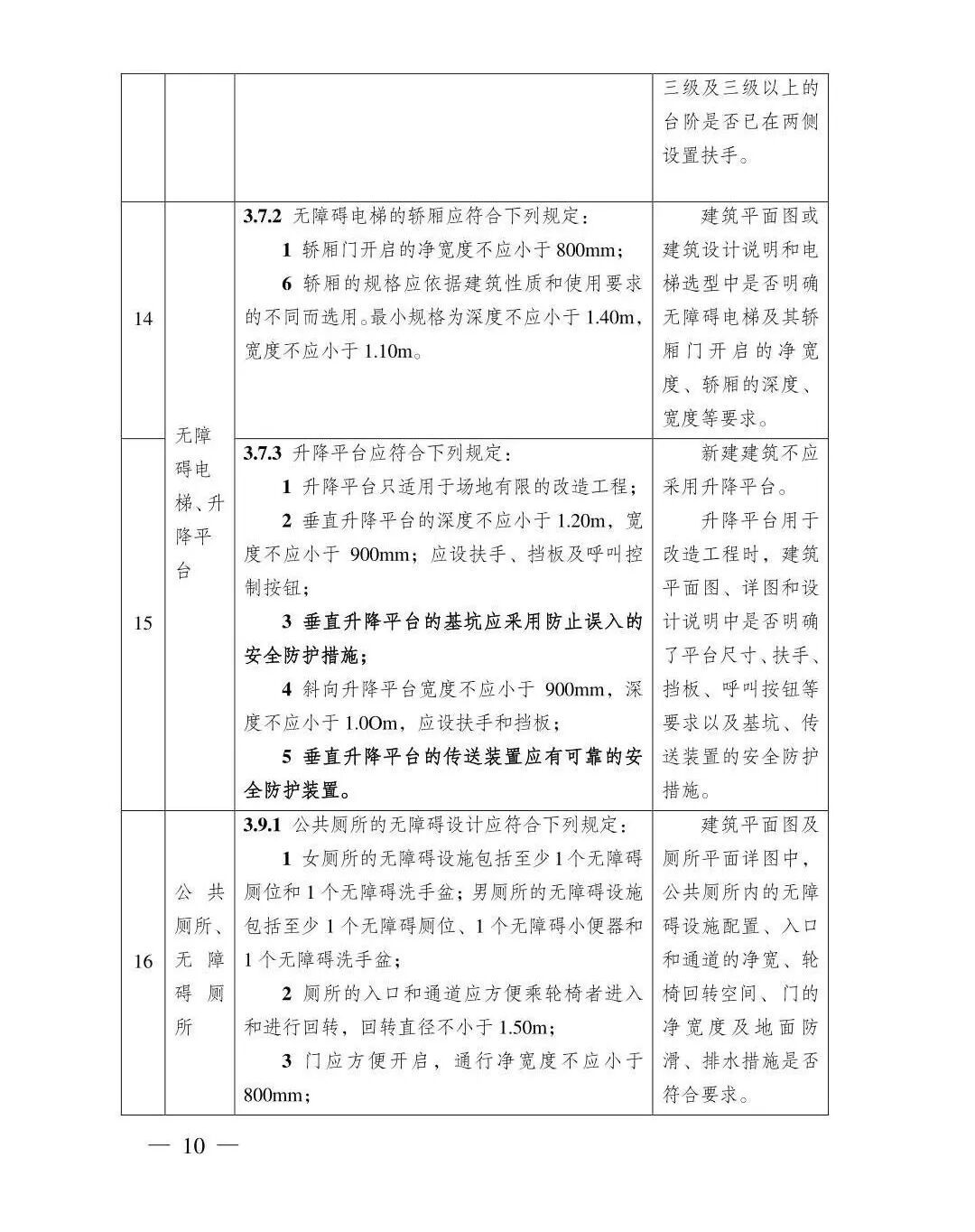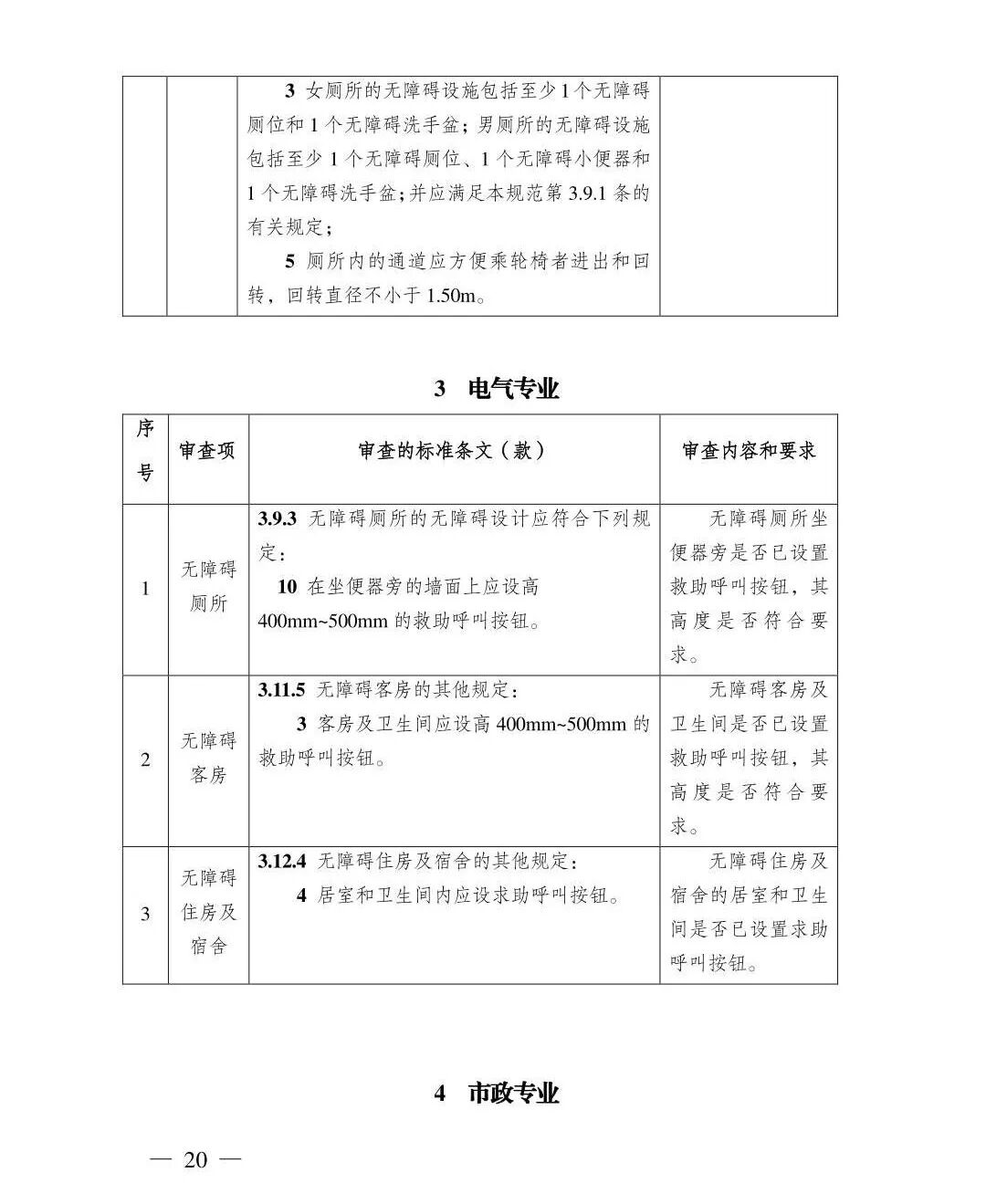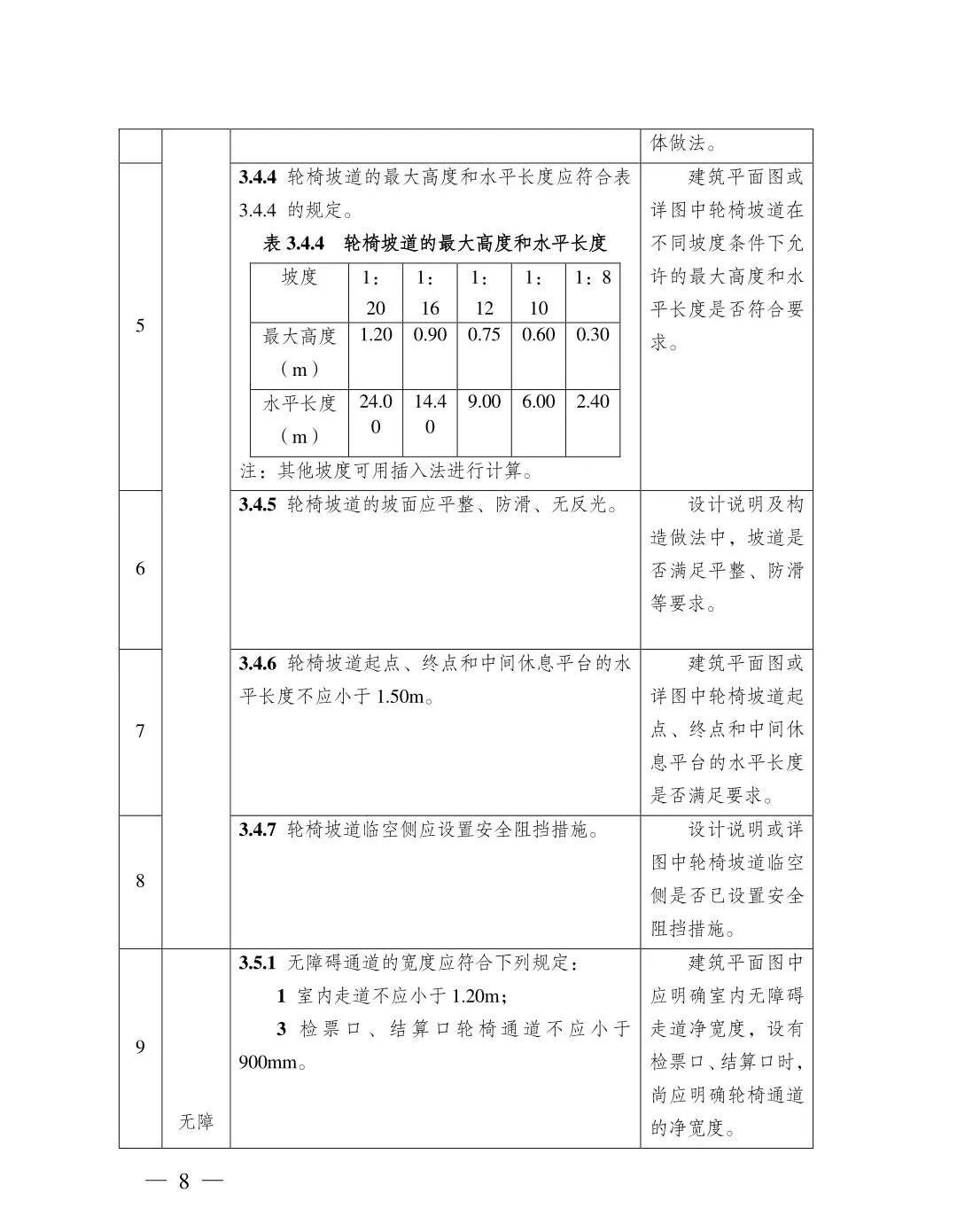 大美无障爱:发现美 传递爱 写在前面的话 这份文件很重要!它的意义在于全国第一个,具有开先河的意义!值得各地相关部门学习借鉴! 从源头抓起,从建筑设计源头抓起,让无障碍在建筑工程中真正落地,不留死角,不留遗憾,不建后再改,不劳民伤财!一直是近年来无障碍推进者和需求者最强烈的呼声!全国人大代表、中国残联副主席吕世明在全国人大建议中曾提到,我国无障碍环境建设快速发展,成效显著,但仍存在管理缺失、设计标准难以落实、施工质量不达标等问题。因此建议国家有关部门尽快制定《行业无障碍专项评审审查认证认可机制》,避免无障碍设施的缺位、形同虚设或是先建后拆。应尽快建立一套行业无障碍的专业评审、认证、监督、验收和处罚机制,这样可以从源头上保证无障碍建设系统完整、高标高质。 近日,江苏省住房和城乡建设厅组织编制的《江苏省民用建筑及市政工程施工图无障碍设计文件技术审查要点》正式下发,该文件强化机制,源头治理,前置审查、措施得力!此举对我国推进高质量、高品质、全覆盖无障碍环境建设具有重要的现实意义和深远的历史意义! 在全面步入小康社会的今天,无障碍已成为民用建筑和市政工程不可或缺的重要内容。无障碍是衡量建筑和城市建设的温度计。江苏省住建厅这份文件的出台,强有力地制止了无视无障碍的设计,实施无障碍设计图纸源头审查,这就是要在设计师头脑中固化深化无障碍理念这根弦,任何缺少或不规范的设计都会导致通不过图纸审查这一关,这种做法的提出是职能部门尽职尽责,对人民负责、对国家负责、对历史负责的体现!是新时代综合治理能力和水平现代化的提升!我们为江苏省住房和城乡建设厅点赞!希望各地无障碍推进者认真学习借鉴江苏做法,并在当地加以推广和推进! 本文件根据PDF文档进行转载,相关表格内容以图片形式展示,如给视障者阅读带来不便深表歉意,待相关网站推出后,我号再详细转载!