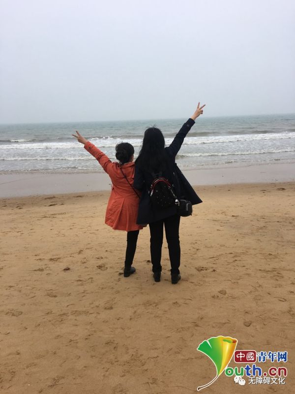 2018年年初,杜诚诚与好友海边比Yeah。本人供图