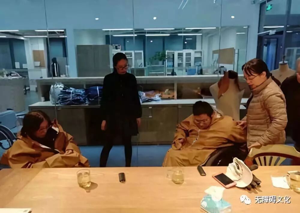 11月19日,在北京服装学院进行无障碍风雨衣的试衣体验及交流,提出需要改进的方面;
