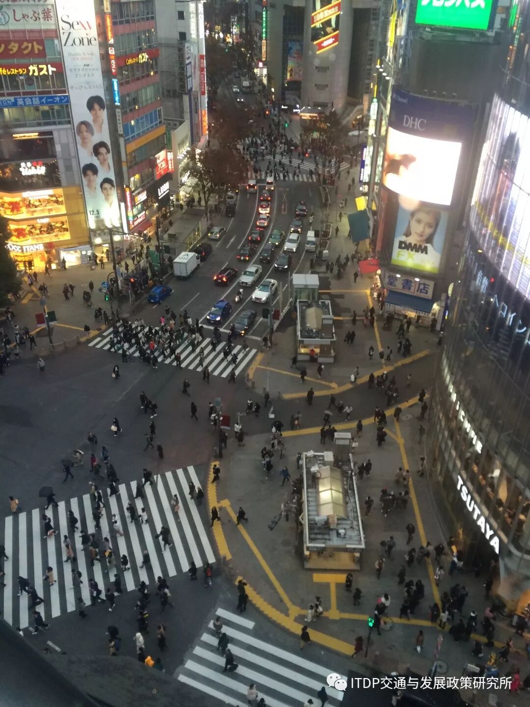 涩谷站八公口前四通八达的盲道,人车繁杂却毫不混乱