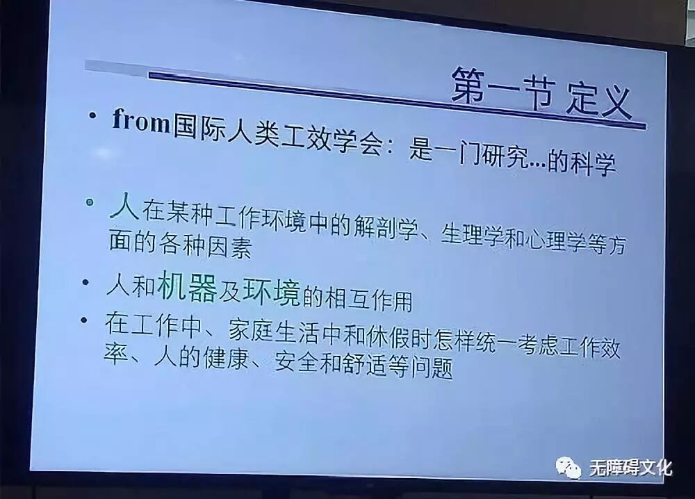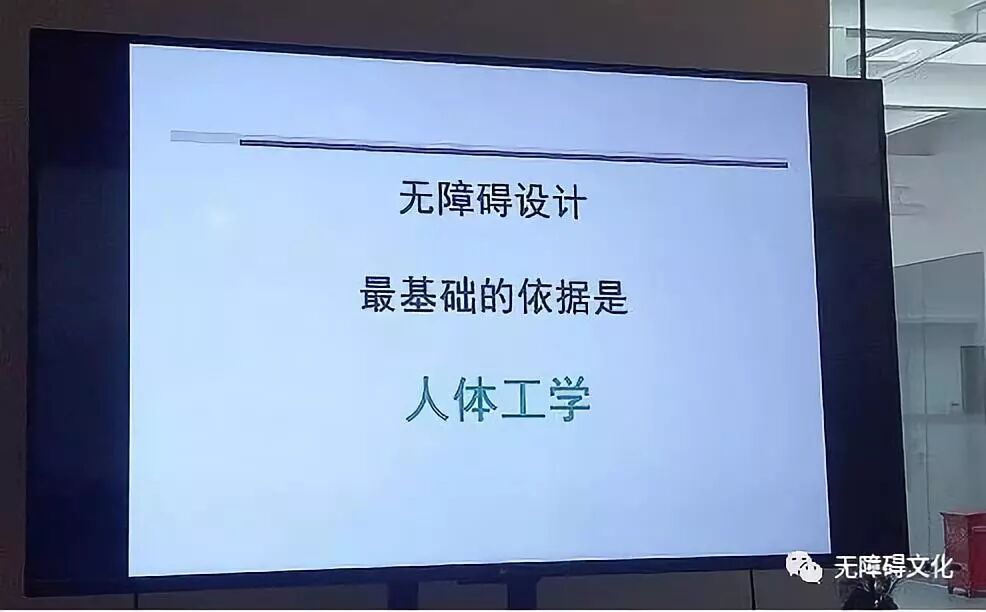 第二、 认识“人体工学”。无障碍中心技术总监郭静老师以理论与实际相结合的方法,讲授“人体工学原理及应用”知识,并探讨了人体工学在无障碍设计中的运用。郭静老师的讲课分为:第一章人体工学的原理,第二章人体的结构与计测,第三章人体工学的应用,强调无障碍设计最基础的依据是人体工学。