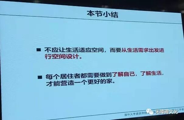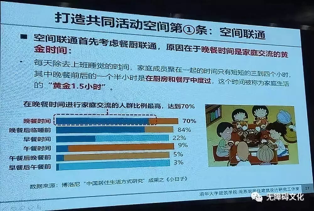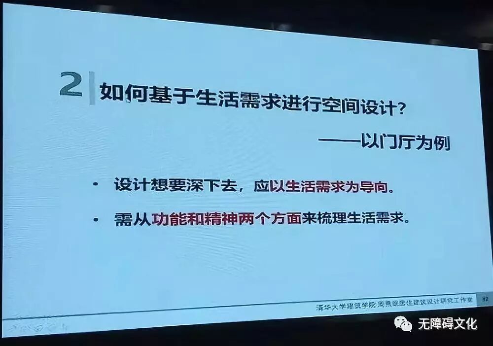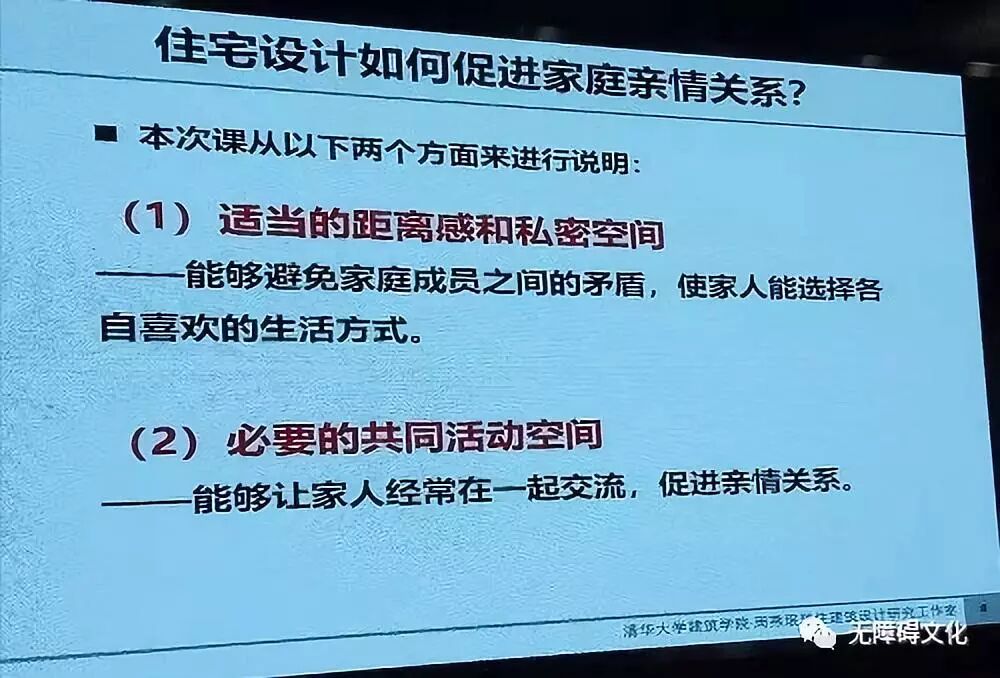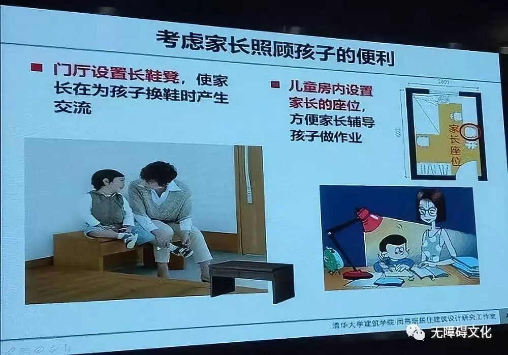 听周燕珉教授的讲座,从始至终被一种浓浓的温情、亲情所包围,每一个案例绝非想象中的冰冷设计,而是处处彰显“以人为本”的设计。“做有温度的住宅设计”传递出的不正是“无障碍文化”所追求的通用、安全、舒适这样的理念吗!