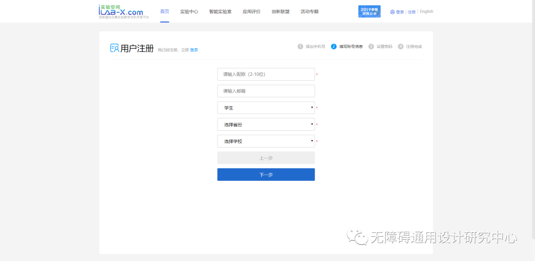 在对应的输入框中输入自己的信息,带*是必填项。确认信息无误后点击【下一步】。