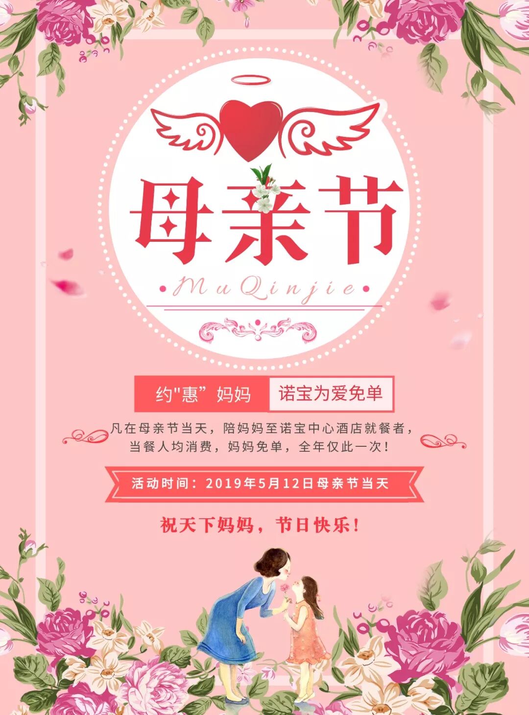 也许妈妈会做的菜花样不多, 也许妈妈的菜没有饭店的摆盘精美, 但妈妈的菜, 永远霸占着你心尖上的一方土地。 从小到大,妈妈为我们做了无数道菜, 不管美味与否, 都是每个人熟悉而又难忘的味道。 长大以后, 我们最念念不忘的菜, 一定是那道属于妈妈的独特味道。 妈妈的辛苦,不让你看见, 我们渐渐长大, 她的脸上却开始布满皱纹, 妈妈做的菜越来越咸, 但我们还是那么爱吃。 又到一年母亲节, 在这样一个特殊的节日里, 感谢她给予我们的生命与爱, 还有数十年间一日三餐的陪伴与守护。 平日里你是不是工作很忙, 有多久没陪妈妈说说话了, 又有多久没陪妈妈吃饭了呢? 其实妈妈需要的不是一份礼物, 而是你的陪伴。 在这个幸福而温馨的日子里, 带妈妈来诺宝中心酒店吃一顿美餐吧! 餐桌上, 你可以和她聊聊你的童年趣事 听她唠唠左邻右舍的家常话 餐后, 和妈妈一起散散步 沐浴温暖的风,呼吸新鲜空气 牵着妈妈的手 感受这份久违的温馨 约“惠”妈妈,诺宝为爱免单! 活动内容:凡在母亲节当天,陪妈妈至诺宝中心酒店就餐者,当餐人均消费,妈妈免单,全年仅此一次! 活动时间:仅限2019年5月12日当天 向妈妈说声:我爱你! 约“惠"热线:021-64191688