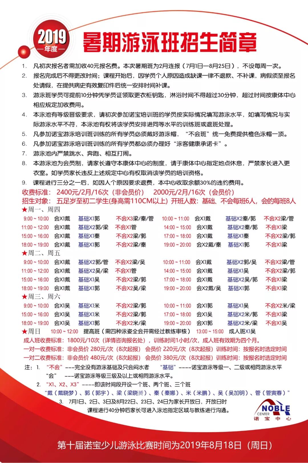 会的班:诺宝游泳等级三级及以上或相同游泳水平