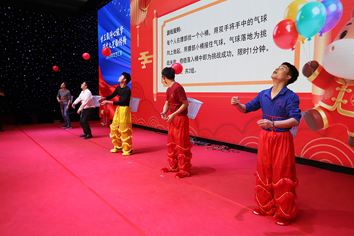 酒店事业部率先登场,带来创意舞蹈《天狮舞风》,灵动舞步尽显一线服务团队的热情与巧思;随后的互动游戏“飞翔的气球”笑声不断,跨部门搭档默契配合,拉近了彼此距离。人事、财务、工程等职能部门联袂献唱《光阴的故事》,熟悉的旋律唤起集体记忆,仿佛带大家重温了并肩奋斗的岁月;康体事业部则以动感舞蹈《不被定义的我们》展现青春朝气,诠释健康向上的团队风貌。“吃货大比拼”趣味接力将气氛推向高潮,协作与欢笑中,团队凝聚力悄然升温。