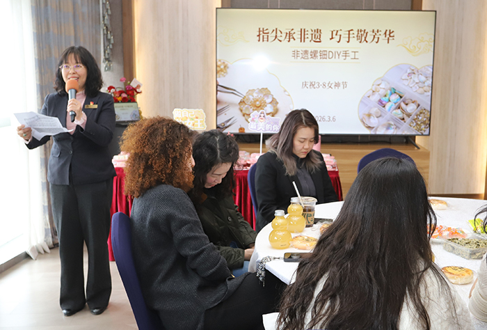 阳春三月,生机盎然。为庆祝第116个“三八”国际劳动妇女节,丰富女员工业余文化生活,3月6日下午,中心工会组织30余名女员工齐聚揽江厅,举办“指尖承非遗·巧手敬芳华”主题手工制作活动。