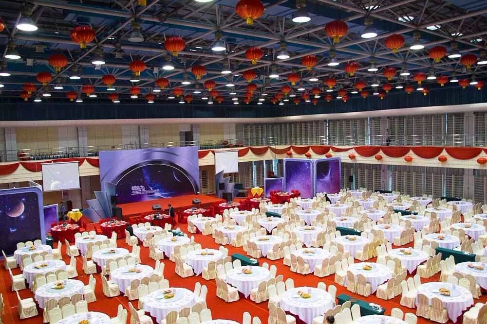 空间宽敞,专业人士按人数为您灵活组合,全方位满足您的场地需求。剧院式、课桌式、圆桌式、U型、回形、长台型等各种会议台型摆放,为各大中小企业年会量身定制。