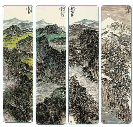 ▲施建中作品:春夏秋冬四条屏