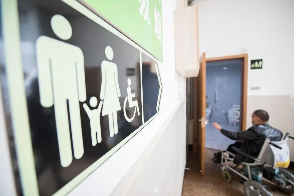 以无障碍公共卫生间为例。推开门,里面传出“AI漂亮小姐姐”的引导声:“您的正前方是并排着的智能马桶、儿童马桶,您的右手边是洗手池。”