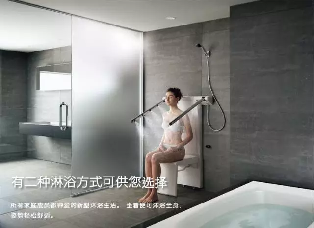 专为老龄人或行动不便者设计的坐式淋浴器,能有效避免老人在爬进爬出浴缸时摔倒。雾浴蒸汽能在短时间内使全身体温提高,老人坐在座椅上便可轻松清洗到脚趾处。与浴缸相比,坐式淋浴器节约了约⅓的水量,尤其适合心脏病患者(浴缸内水压危害)。