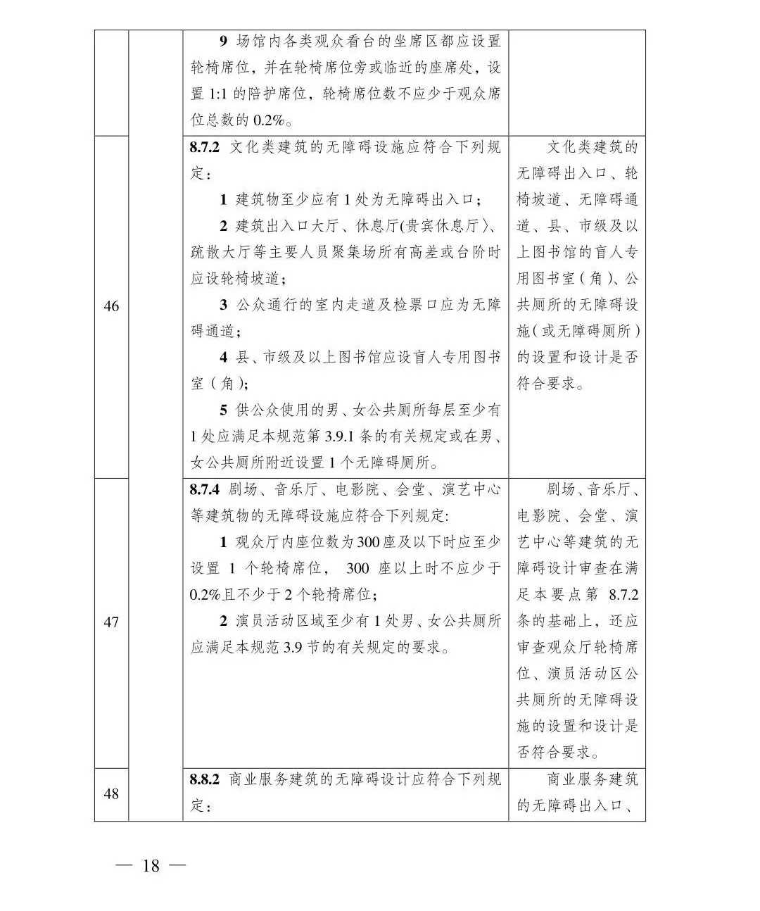 大美无障爱:发现美 传递爱 写在前面的话 这份文件很重要!它的意义在于全国第一个,具有开先河的意义!值得各地相关部门学习借鉴! 从源头抓起,从建筑设计源头抓起,让无障碍在建筑工程中真正落地,不留死角,不留遗憾,不建后再改,不劳民伤财!一直是近年来无障碍推进者和需求者最强烈的呼声!全国人大代表、中国残联副主席吕世明在全国人大建议中曾提到,我国无障碍环境建设快速发展,成效显著,但仍存在管理缺失、设计标准难以落实、施工质量不达标等问题。因此建议国家有关部门尽快制定《行业无障碍专项评审审查认证认可机制》,避免无障碍设施的缺位、形同虚设或是先建后拆。应尽快建立一套行业无障碍的专业评审、认证、监督、验收和处罚机制,这样可以从源头上保证无障碍建设系统完整、高标高质。 近日,江苏省住房和城乡建设厅组织编制的《江苏省民用建筑及市政工程施工图无障碍设计文件技术审查要点》正式下发,该文件强化机制,源头治理,前置审查、措施得力!此举对我国推进高质量、高品质、全覆盖无障碍环境建设具有重要的现实意义和深远的历史意义! 在全面步入小康社会的今天,无障碍已成为民用建筑和市政工程不可或缺的重要内容。无障碍是衡量建筑和城市建设的温度计。江苏省住建厅这份文件的出台,强有力地制止了无视无障碍的设计,实施无障碍设计图纸源头审查,这就是要在设计师头脑中固化深化无障碍理念这根弦,任何缺少或不规范的设计都会导致通不过图纸审查这一关,这种做法的提出是职能部门尽职尽责,对人民负责、对国家负责、对历史负责的体现!是新时代综合治理能力和水平现代化的提升!我们为江苏省住房和城乡建设厅点赞!希望各地无障碍推进者认真学习借鉴江苏做法,并在当地加以推广和推进! 本文件根据PDF文档进行转载,相关表格内容以图片形式展示,如给视障者阅读带来不便深表歉意,待相关网站推出后,我号再详细转载!