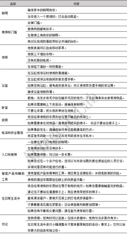 瑞典自1984年提出了“终身住在自己家”的方针。据统计,在65岁以上的人中,有四分之三的跌倒事故发生在自己家中。因此,服务机构提供房屋安全清单,对住宅进行小规模基础类的修缮,以帮助老年人最大限度地降低家中最常见的跌倒风险。Seniorval.se是瑞典最大的搜索和信息服务机构,在65岁以上的人中,有四分之三的跌倒事故发生在他们自己的家中。Seniorval.se房屋安全清单可以帮助老年人最大限度地降低家中最常见的跌倒风险。