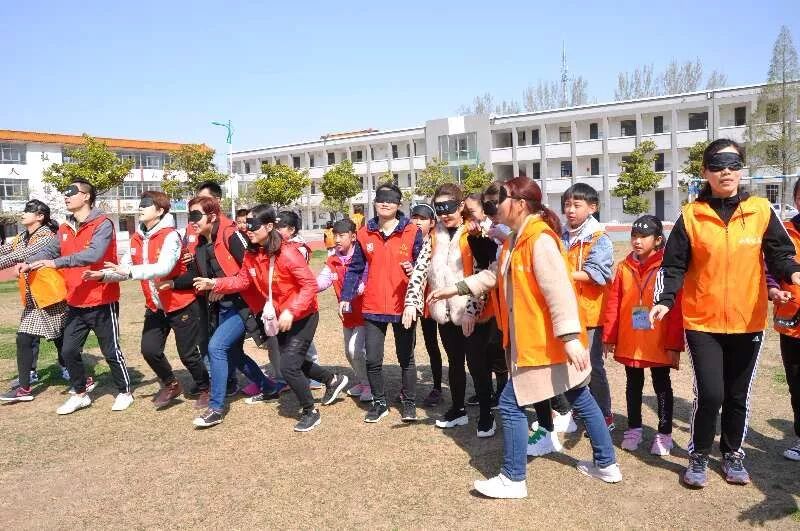 父母们戴上眼罩站在操场中间,需要在自己孩子的声音指引下,走到20多米远的球门里。家长们第一次有这种“黑暗”体验,下意识地伸出双手摸索,生怕碰到别人。好在孩子们在后面不断用声音提示,最后大家都完成任务。