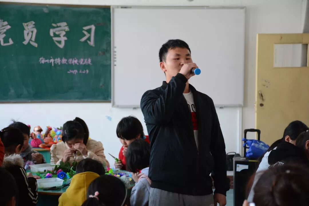 当日上午9点半,参加活动的志愿者和亲子家庭乘坐大巴来到特教学校。