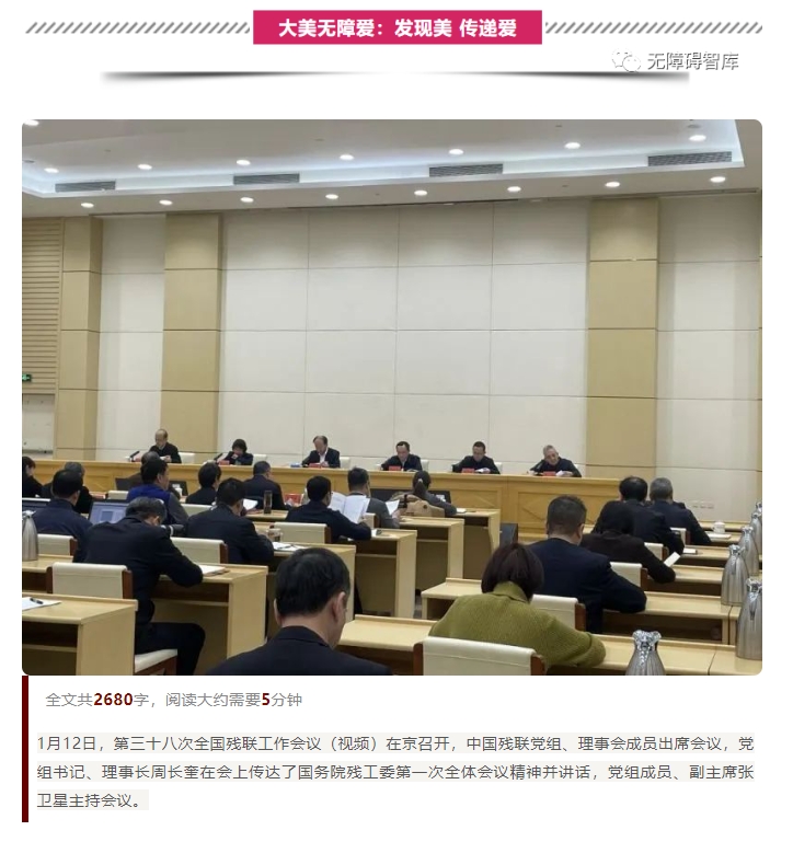 2024年是中华人民共和国成立75周年,是实施“十四五”规划的关键一年,也是全面落实中国残联八代会精神的开局之年,中国残联对今年的工作进行了部署。1月12日,第三十八次全国残联工作会议(视频)在京召开,中国残联党组、理事会成员出席会议,党组书记、理事长周长奎在会上传达了国务院残工委第一次全体会议精神并讲话,党组成员、副主席张卫星主持会议。会议总结了2023年残疾人工作取得的新成绩,重点对做好2024年工作进行了部署。河北、贵州、河南、福建、宁夏、广东、山西、北京等残联主要负责人作了交流发言。一年来,我国残疾人事业在党中央、国务院的坚强领导下,在各级党委、政府和社会各方面大力支持下,在残疾人工作者的共同努力下取得了新的成效,残疾人工作又上了一个新台阶。其中,胜利召开了中国残联八代会,新征程残疾人事业绘就新蓝图。各级残联高质量完成换届任务,残联组织的政治性、先进性、群众性显著增强,履职能力有效提升,组织基础更加牢固。成功举办康复国际百年庆典、杭州亚残运会、残疾人职业技能大赛和展能节等系列重大活动,残疾人工作展现新气象,为残疾人事业高质量发展营造了良好环境。加快实施《“十四五”残疾人保障和发展规划》,残疾人基本民生保障和公共服务有了新提升。开展《“十四五”残疾人保障和发展规划》中期评估,促进残疾人事业进一步融入经济社会发展大局。推动颁布实施无障碍环境建设法,残疾人事业法治建设和残疾人权益保障实现新突破,为残疾人等平等参与社会生活提供了更加有力的法治保障。主动服务国家外交大局,残疾人领域对外交流有了新拓展。“一带一路”残疾人事务主题论坛、中美残疾人事务协调会等活动成功举办,残疾人事业国际影响力日益扩大。坚持不懈加强残联政治建设,残联改革和自身建设取得新成效。深入开展学习贯彻习近平新时代中国特色社会主义思想主题教育,在以学铸魂、以学增智、以学正风、以学促干方面取得扎实成效。加强残联党的建设,推进全面从严治党,深化残联改革,突出做好困难重度残疾人联系帮扶工作,持续改进工作作风。