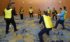 活动在欢快热烈的氛围中拉开序幕。“破冰热身”环节通过“开火车”分组、“拍拍操”热身、“解手链”协作等互动游戏,迅速打破部门与岗位间的隔阂。全体成员分为四支充满活力的队伍,各队民主推选队长,精心设计队名与口号,并以充满创意的“定格拍”点燃全场热情,初步建立起紧密的团队联结。