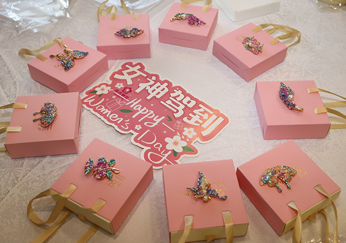 “我做好啦!我的蝴蝶飞起来啦!”突然,一声开心的欢呼打破了宁静。一位女员工举起成品,成为全场第一个完工的人。只见那枚胸针翅膀层次分明,仿佛下一秒就要振翅高飞。这一举动瞬间引爆现场,大家纷纷围拢欣赏,交流制作技巧,笑声与成就感交织。经过拼接、点缀,一件件独具匠心的蝴蝶胸针陆续诞生,寓意着每一位女员工都能如蝴蝶般蜕变成长、拥抱美好。