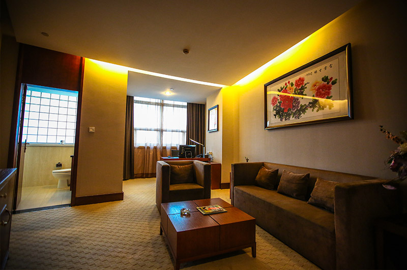 豪华套房 面积(m²):50m² 沐浴设施:淋浴 床的尺寸:1.5m 电视尺寸:42/32 电脑:有 迷你吧:有(酒、饮料、面、咖啡、点心、饼干等) 免费提供:矿泉水两瓶、欢迎水果、精美盒装茶叶 早餐38元一位 客房附加健身设施:健身、游泳、瑜珈、动感单车等